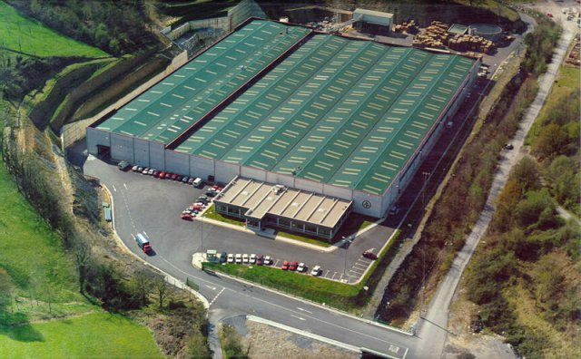 Nave formada por pilares y vigas delta. Edicifio de oficinas adosado formado por pilares, vigas en T invertida y forjado. Terminación de panel: Gris Rayado.